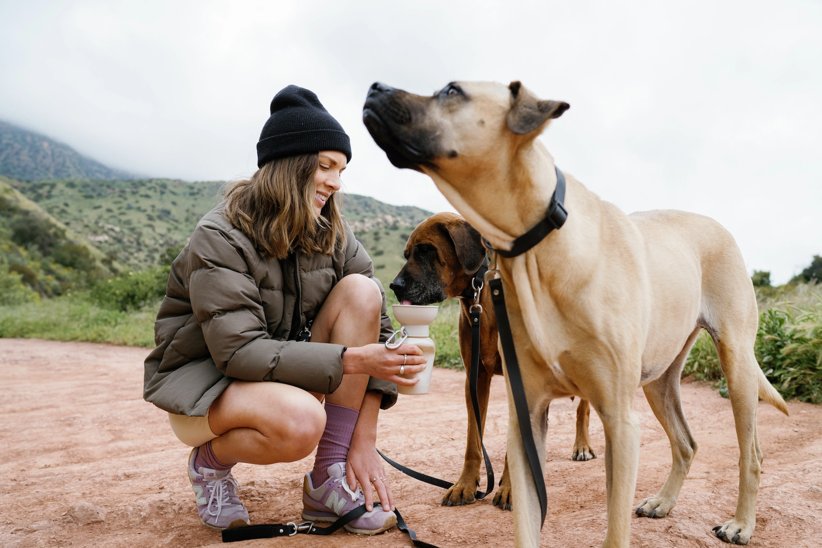 The perfect solution for keeping your dog hydrated on-the-go. Designed for your dog to drink fresh water from the attached bowl without wasting a drop. Simply squeeze the bottle with one hand to fill the bowl and release to drain the excess water back in. The leak-tight innovative bottle includes a carabiner for easy clipping to your backpack, bag, or leash — ideal for hikes, beach visits, road trips, and walks around the neighborhood.